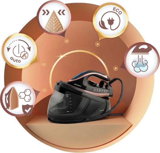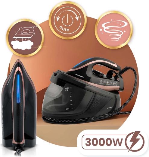 - 3000 W mocy dla szybkiego nagrzewania i silnego wyrzutu pary