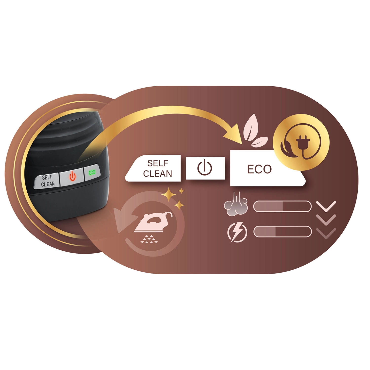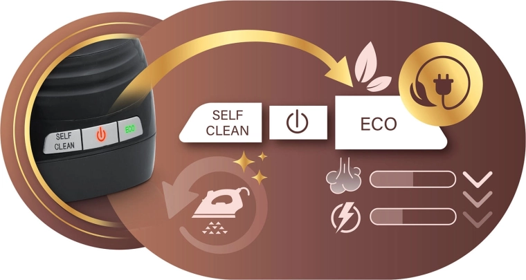 - Auto-off, ECO, Self Clean – bezpieczeństwo, oszczędność i łatwa konserwacja