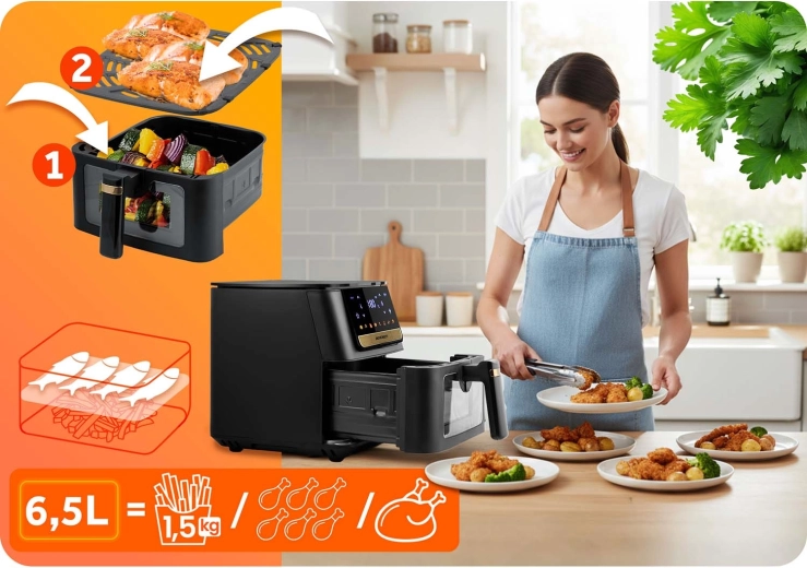 - Duża pojemność 6,5 l na rodzinne porcje i całą pizzę