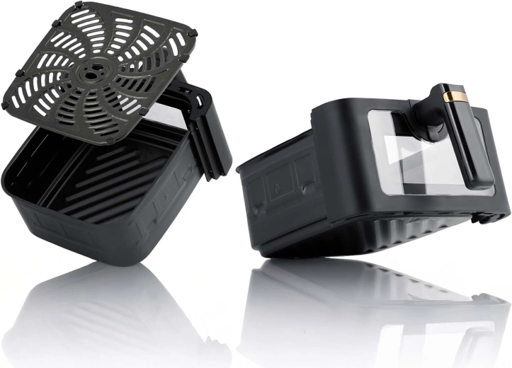 Wybierz jeden z 8 zaprogramowanych trybów (frytki, ryby, kurczak, krewetki, steki, ciasto, pizza, skrzydełka) lub ustaw ręcznie czas i temperaturę do 200 °C. Nieprzywierający kosz i ruszt z powłoką PTFE ułatwiają czyszczenie, elementy można myć w zmywarce. Bezpieczną pracę gwarantują termicznie izolowana konstrukcja, zimny uchwyt, zabezpieczenie przed przegrzaniem oraz automatyczne wyłączanie.