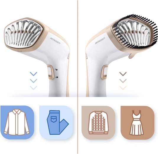 Wydajny i stylowy ręczny steamer do ubrań BERDSEN o mocy 1600 W oferuje mocny strumień pary 26 g/min, szybkie wygładzanie bez deski do prasowania oraz duży wyjmowany zbiornik 230 ml. Proste sterowanie jednym przyciskiem, dezynfekcję parą bez chemii i praktyczne akcesoria w zestawie, co czyni go idealnym wyborem do domu i w podróży.