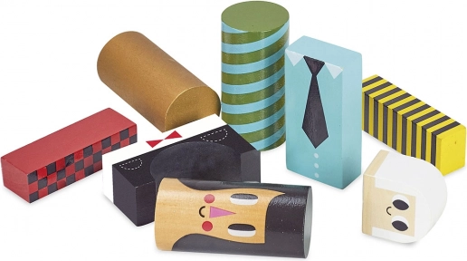 Drewniane klocki VILAC z ilustracjami postaci ludzkich to świetny wybór dla twórczych dzieci od 3 lat. Elementy w kształcie głów, tułowi, nóg i czapek można dowolnie łączyć, tworząc nieskończoną liczbę zabawnych i oryginalnych postaci. Zabawa naturalnie rozwija kreatywność, koordynację ręka–oko oraz małą motorykę.