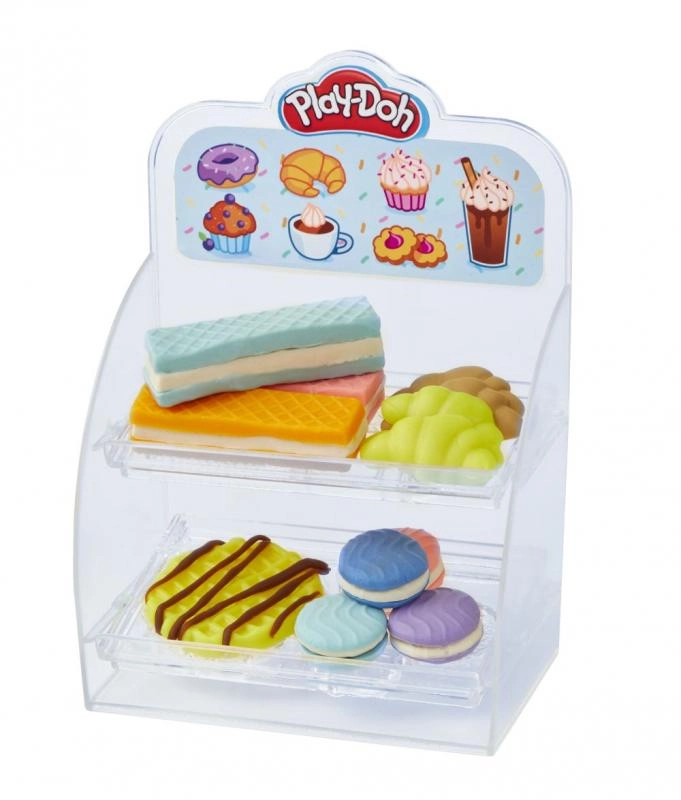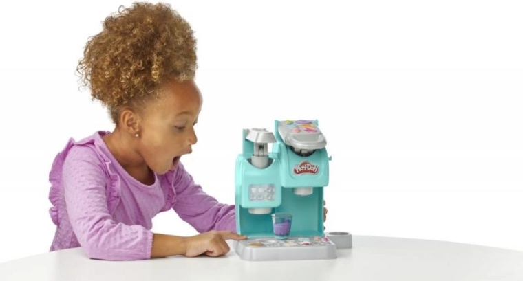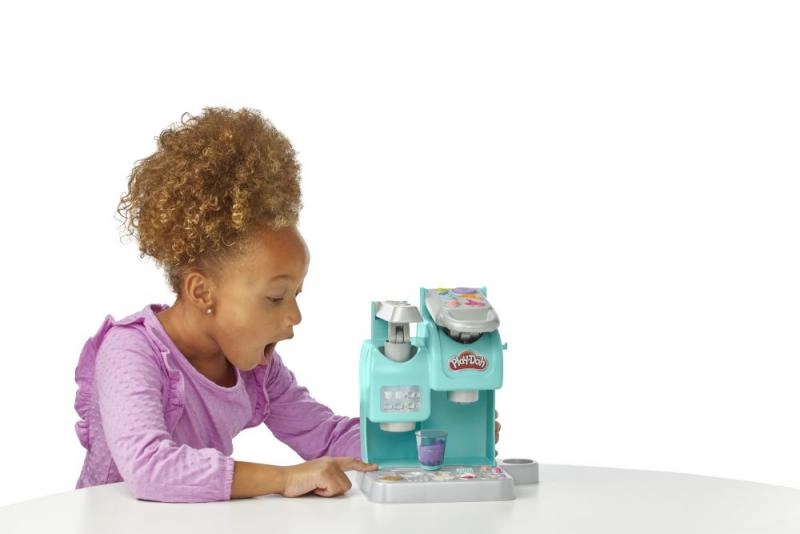 Zamień kącik zabaw w kawiarnię z Play-Doh Kolorowa kawiarnia! Turkusowe urządzenie z dźwignią wyciska „napój” do kubeczka, w stacji wydawczej ozdobisz go puszystą „bitą śmietaną”, a dzięki foremkom przygotujesz apetycznie wyglądające słodkości. Wszystko potem ustawisz w przezroczystym stojaku jak w prawdziwej witrynie.