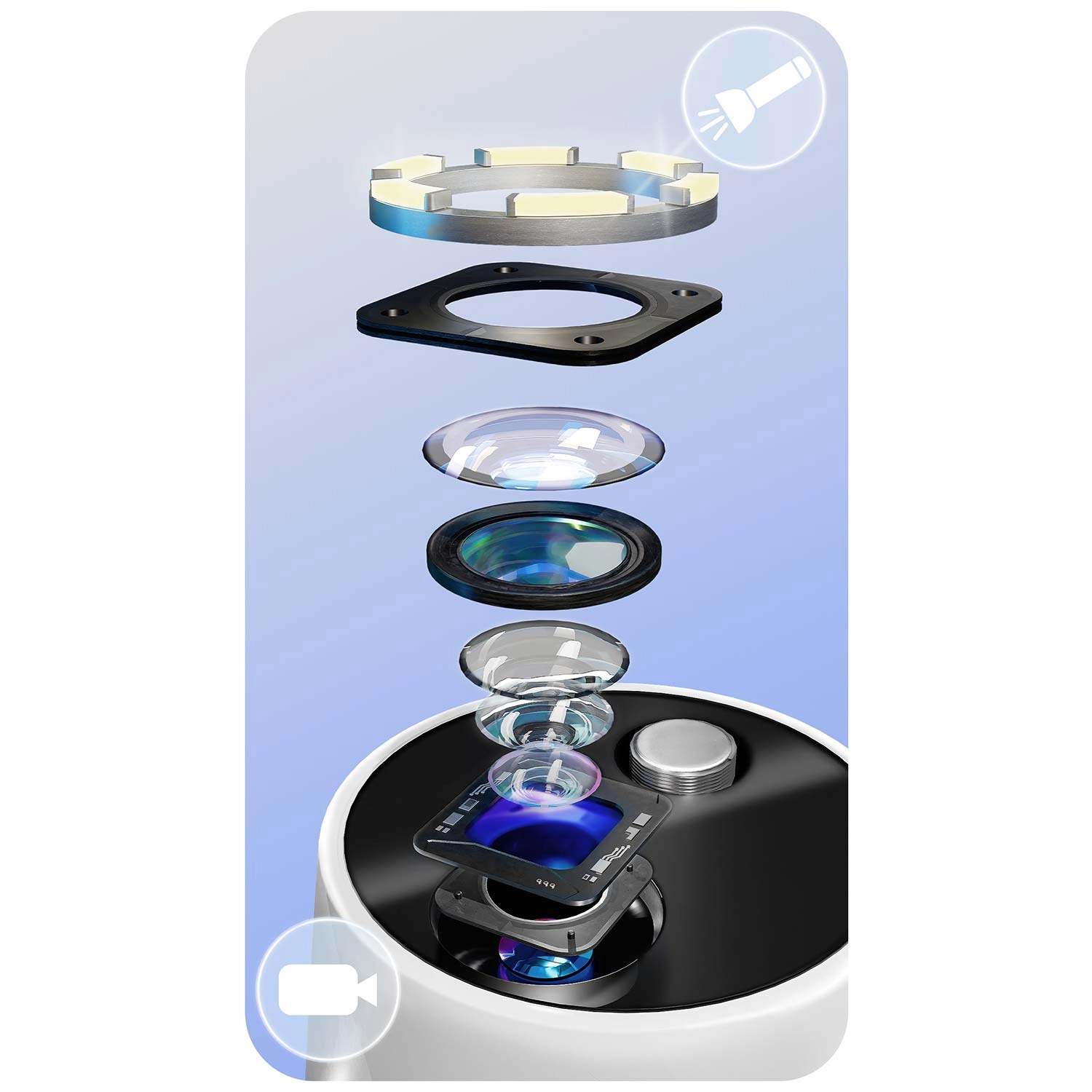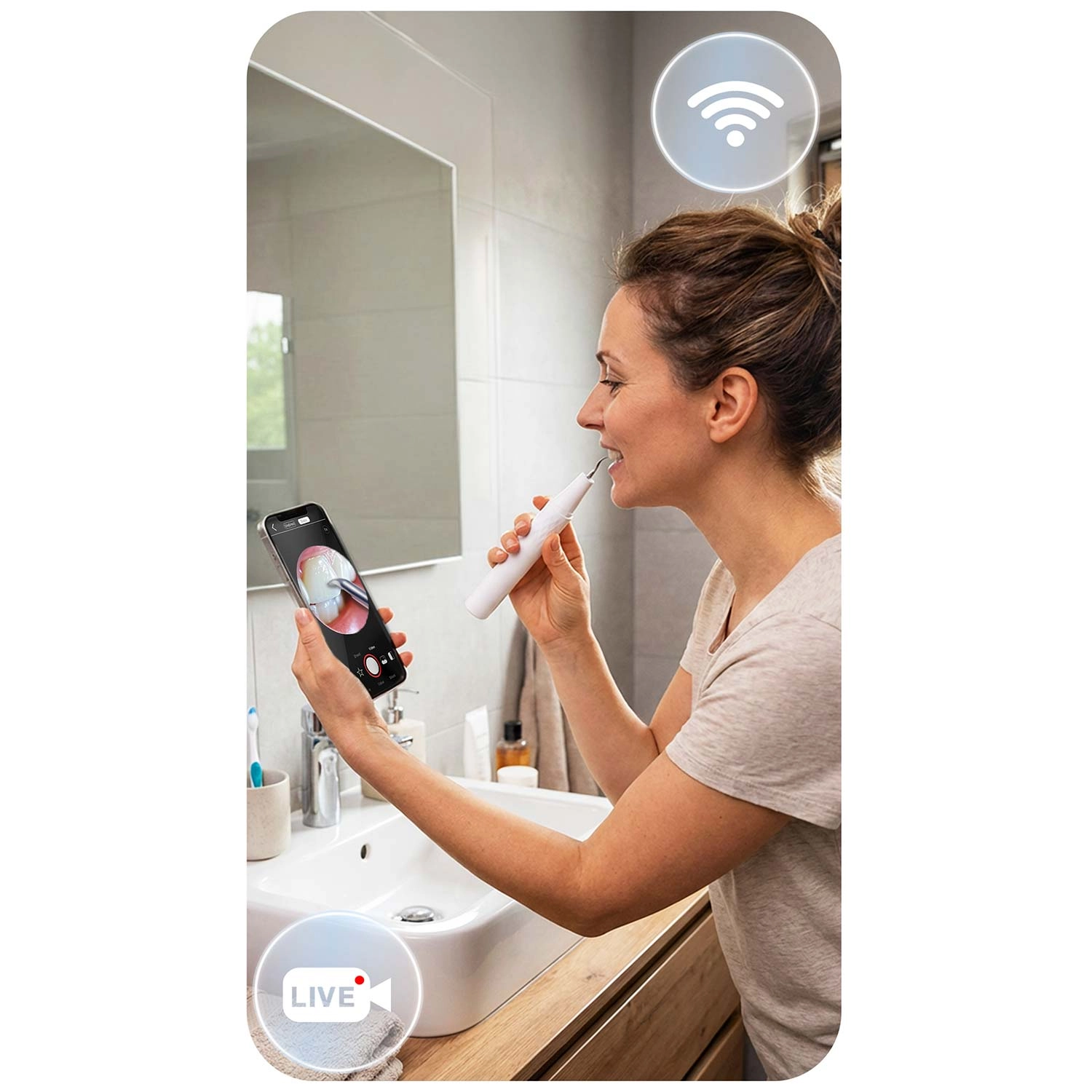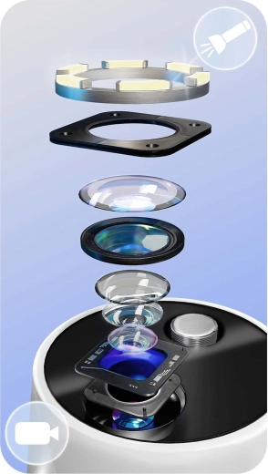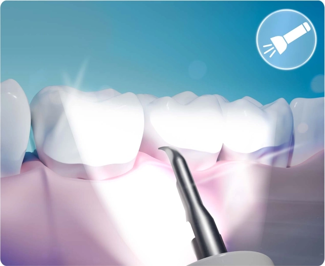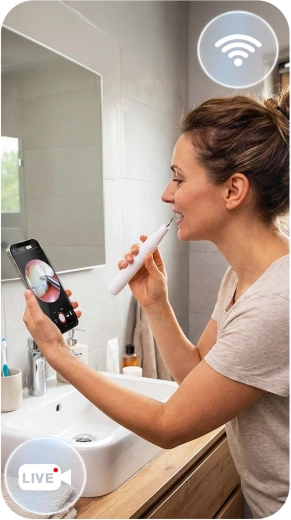 Widzisz, co czyścisz – pełna kontrola i precyzja. Zintegrowana kamera 2 Mpx z diodami LED przesyła obraz w czasie rzeczywistym do aplikacji mobilnej. Łatwo zidentyfikujesz kamień, przebarwienia oraz trudno dostępne miejsca i usuniesz wyłącznie to, co konieczne – bez zbędnego podrażniania i zgadywania.