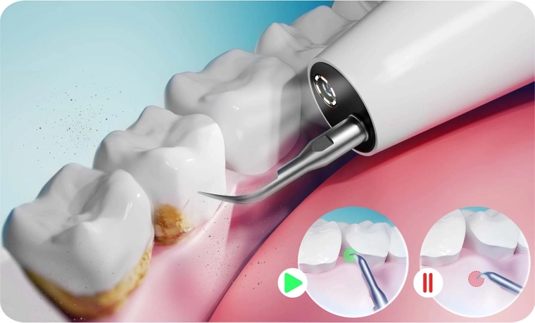 Bezpieczeństwo na pierwszym miejscu: Urządzenie automatycznie zatrzymuje pracę przy kontakcie z dziąsłem lub językiem. Technologia sonicznego i ultradźwiękowego czyszczenia jest łagodna dla szkliwa i dziąseł, a jednocześnie skuteczna wobec kamienia i osadów. Dzięki IPX7 skaler jest odporny na wodę i zachlapania, światło LED zwiększa precyzję, a ładowanie USB‑C ułatwia codzienne użytkowanie.