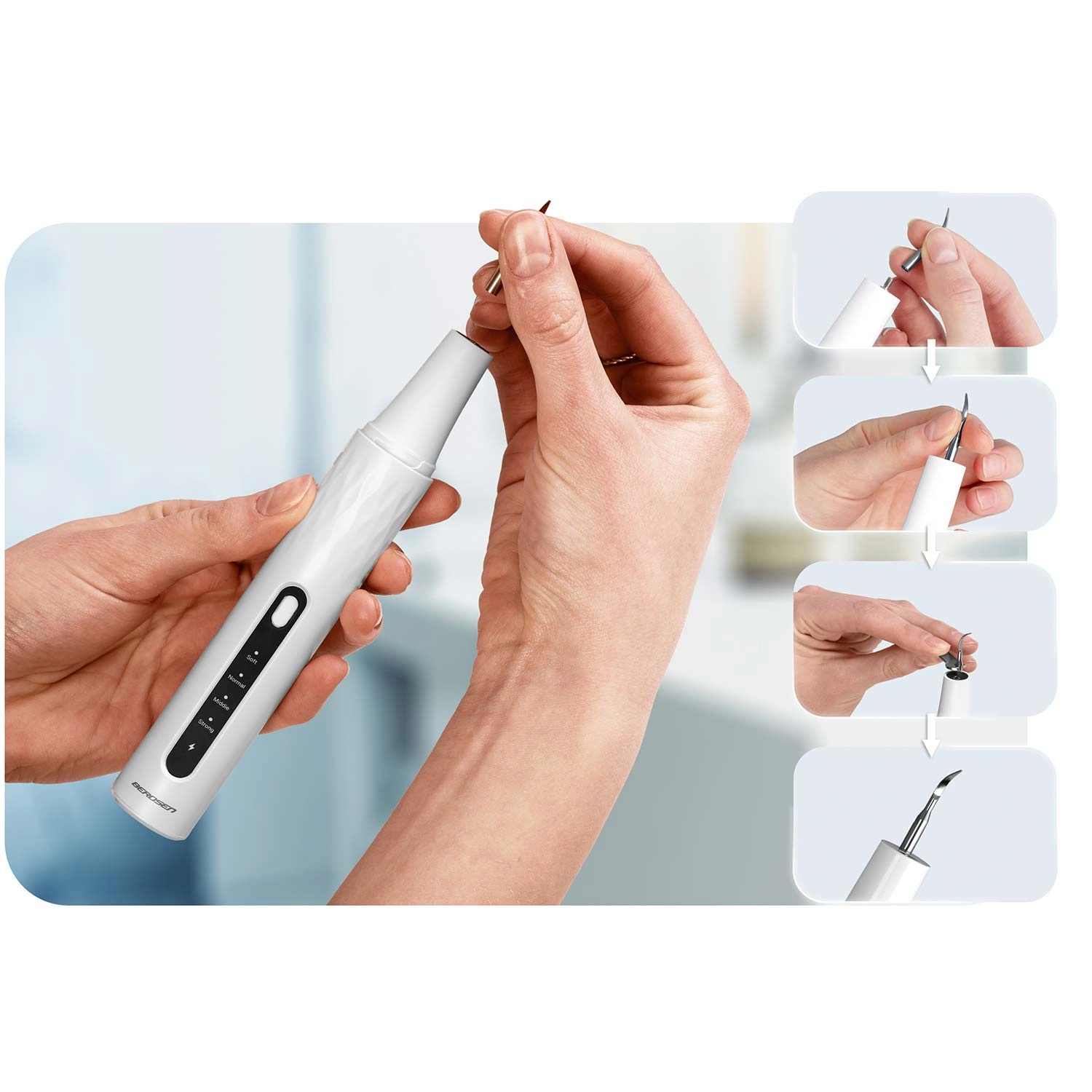 - STRONG (42–45 kHz) – skuteczne przy silnym kamieniu nazębnym.