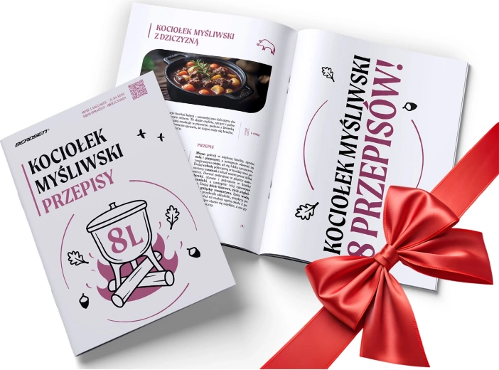 W zestawie ciężka pokrywa z odpowietrzeniem, wkręcany trójnóg ze stabilnymi nogami oraz książka z 8 sprawdzonymi przepisami na idealny start.