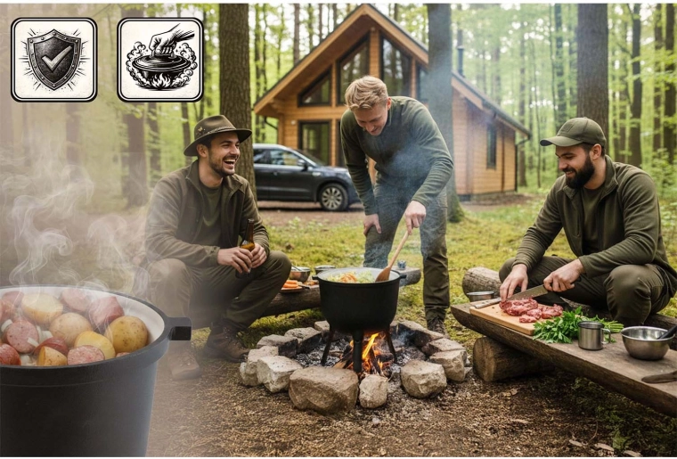 Postaw na trójnogu, zawieś nad ogniskiem lub odkręć nóżki i używaj na kuchence gazowej. Jeden kociołek – wiele możliwości gotowania w plenerze i w domu.
