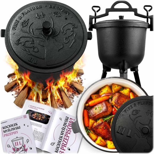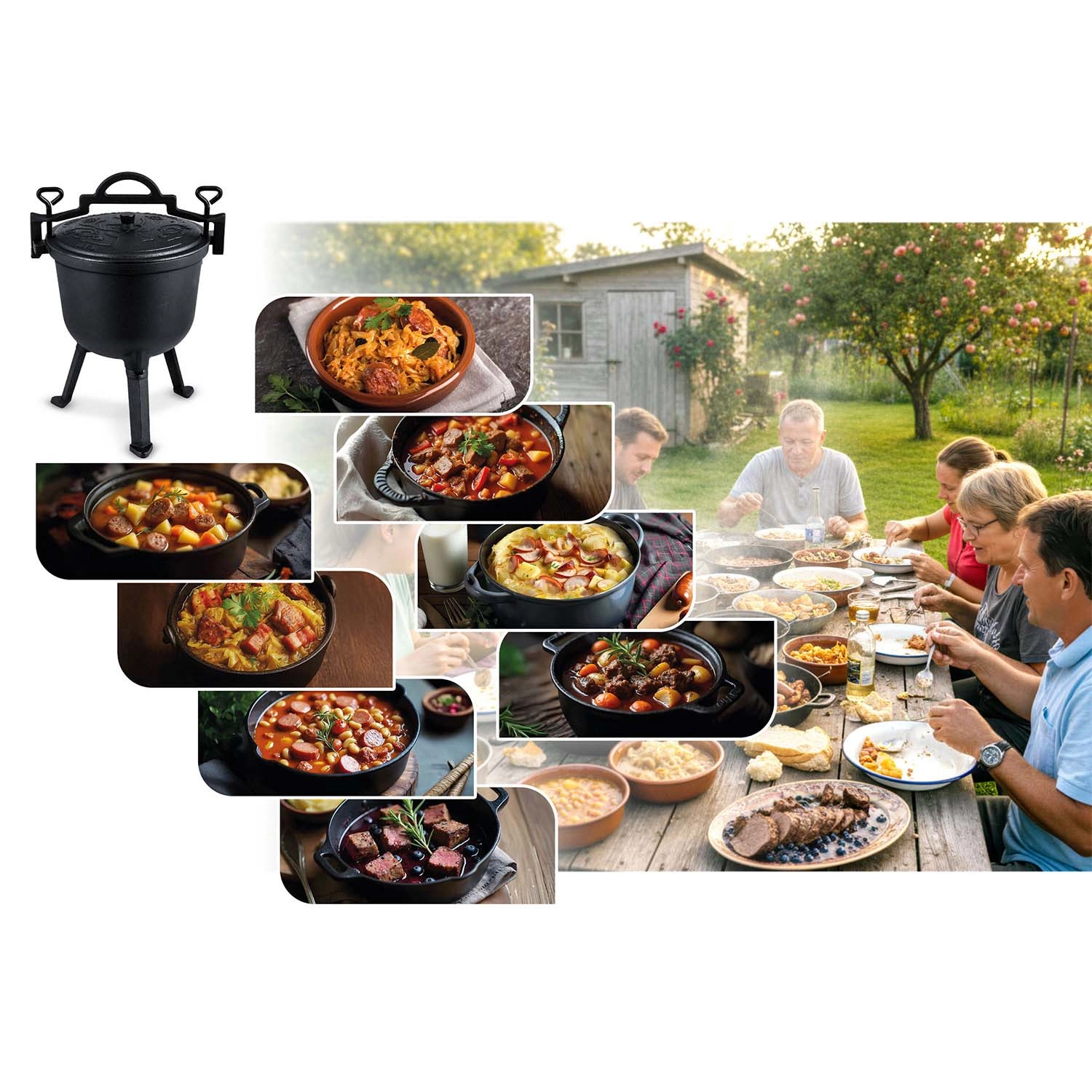 Wróć do rzetelnego gotowania nad ogniem. Ten emaliowany żeliwny kociołek 11 l został stworzony na długie lata – masywne żeliwo akumuluje ciepło, równomiernie ogrzewa potrawę od dna aż po pokrywę i utrzymuje stabilną temperaturę dla powoli duszonych gulaszy, ragu i dań jednogarnkowych. Ciężka pokrywa z odpowietrzeniem zatrzymuje parę i aromat wewnątrz, dzięki czemu mięso kruszeje, a warzywa nasiąkają pełnią smaku.