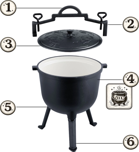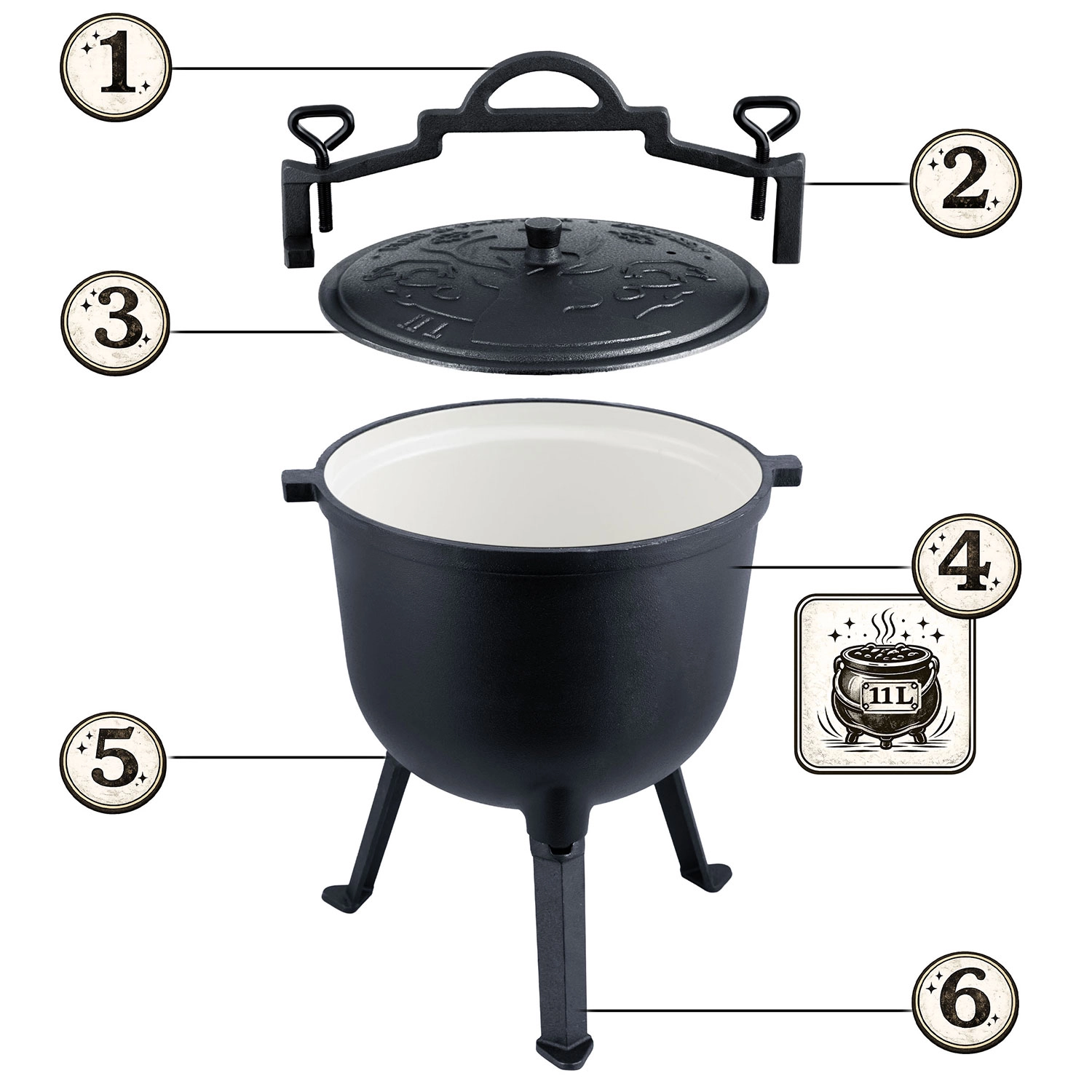 Odepnij nogi i gotuj na gazie, pozostaw kociołek na nogach lub zawieś go nad paleniskiem. Jedno naczynie do biwakowania, ogrodu i domowych kulinarnych wyzwań.
