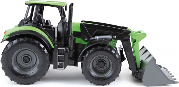 Solidny dziecięcy traktor z łyżką czołową w designie DEUTZ FAHR Agrotron zachwyca realistycznym wykonaniem w skali 1:15. Ma funkcyjną przednią łyżkę, jest wykonany z wysokiej jakości plastiku i nadaje się zarówno do zabawy w domu, jak i na zewnątrz. Długość 45 cm.