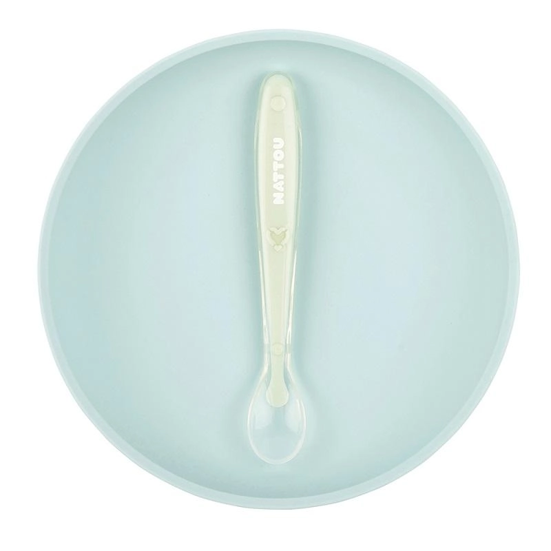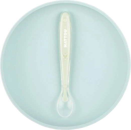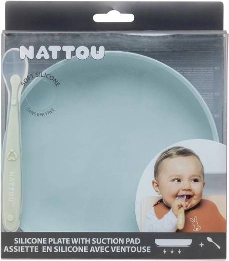 Ułatw pierwsze przecierki i samodzielne jedzenie dzięki wysokiej jakości silikonowemu zestawowi Nattou. Miękki i elastyczny materiał jest odporny na upadki, przyjemny w dotyku i delikatny dla dziecięcych dziąseł. Talerzyk z wydajną przyssawką mocno przylega do gładkiej powierzchni i minimalizuje bałagan przy stole.