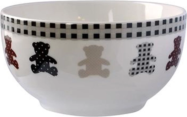Stylowa biała miska do serwowania z uroczym motywem misia ucieszy dzieci i dorosłych. Praktyczna do codziennego użytku – odpowiednia do kuchenki mikrofalowej i zmywarki. Z pojemnością 500 ml i kompaktowymi wymiarami 13 × 6,5 cm sprawdzi się do zup, płatków, deserów i przekąsek.