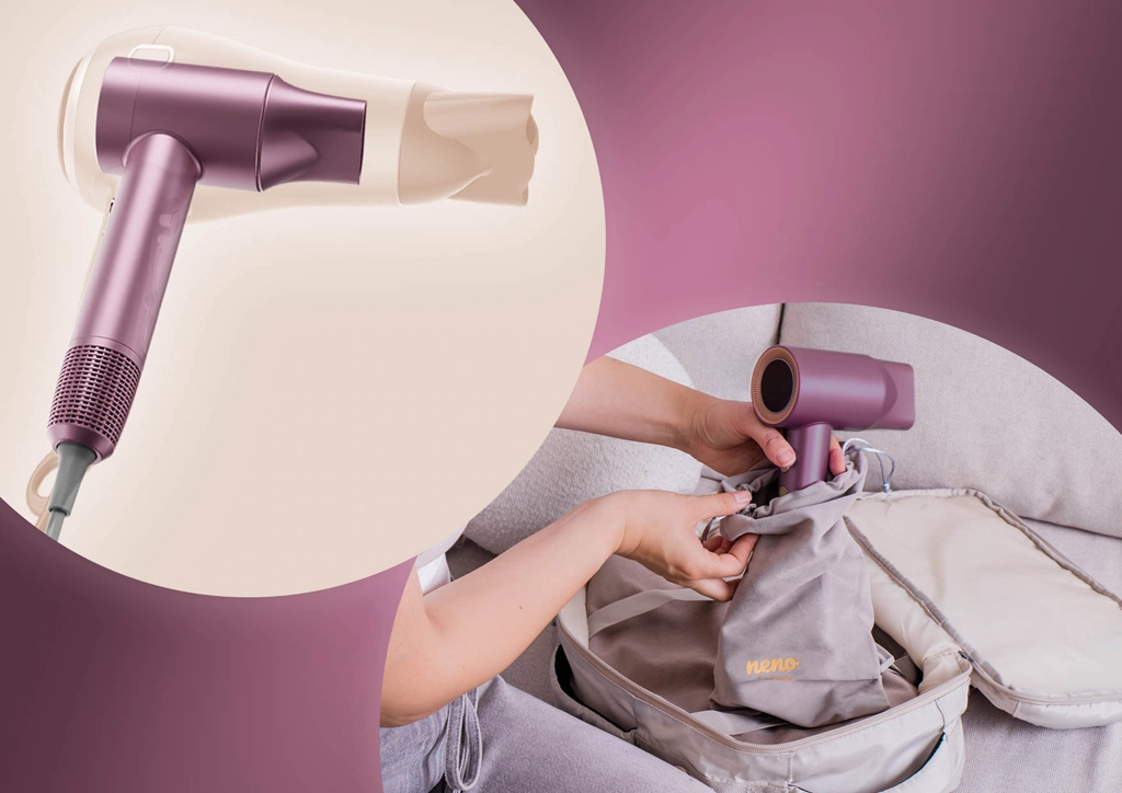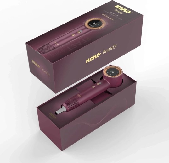 Neno Beauty Silvia łączy nowoczesną technologię z codziennym komfortem. Dzięki zaawansowanej jonizacji eliminuje elektryzowanie, domyka łuski i pozostawia włosy gładkie i lśniące. Inteligentny czujnik kontroluje temperaturę nawet 100× na sekundę, chroniąc włosy przed przegrzaniem i uszkodzeniami. Wyświetlacz LED z kolorowym pierścieniem czytelnie pokazuje temperaturę oraz prędkość nawiewu, więc masz stylizację pod kontrolą jednym spojrzeniem.