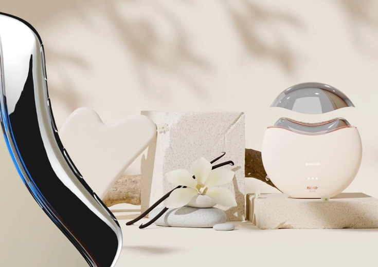 • Głowica Gua Sha: dopasowuje się do konturów, wspiera mikrocyrkulację i drenaż limfatyczny