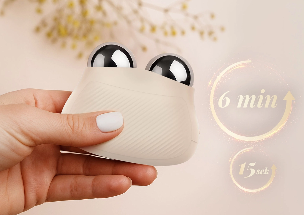 Ergonomiczna, podwójna głowica naturalnie dopasowuje się do policzków, linii żuchwy i szyi. Pięć poziomów intensywności, pamięć ostatnich ustawień oraz 6‑minutowy timer z interwałami co 15 s upraszczają codzienny rytuał.
