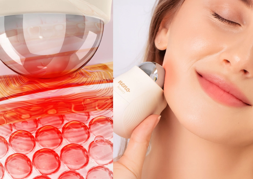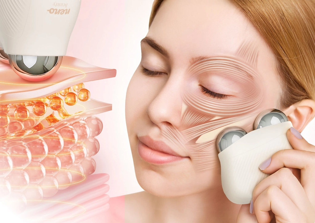 Neno Beauty Naya przenosi efekty pielęgnacji salonowej do Twojego domu. Potrójna kombinacja technologii – EMS (elektryczna stymulacja mięśni), termoterapia i wibracyjny masaż – celowo wspiera ujędrnienie konturów, rozluźnienie napięć i rozświetlenie skóry. Ergonomiczna podwójna głowica płynnie dopasowuje się do linii żuchwy, policzków i szyi, zapewniając komfortowe i efektywne zabiegi.