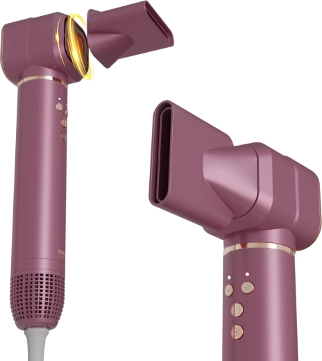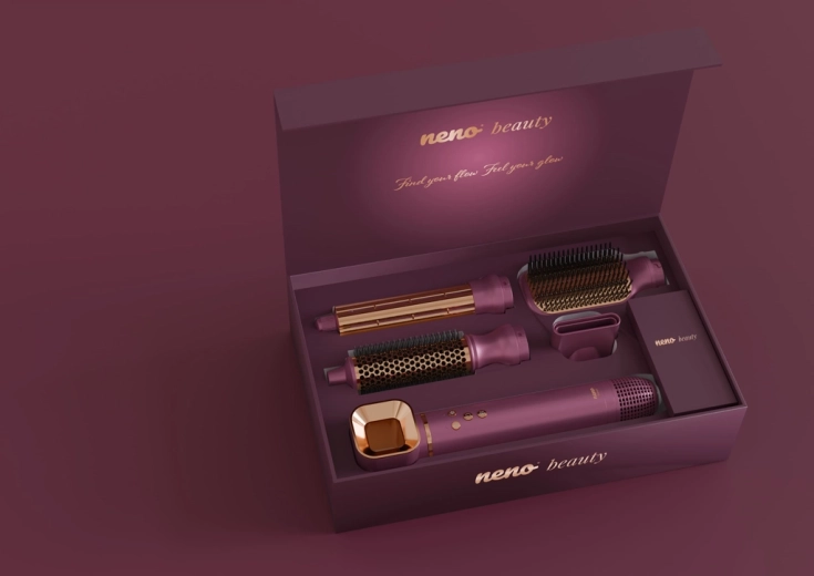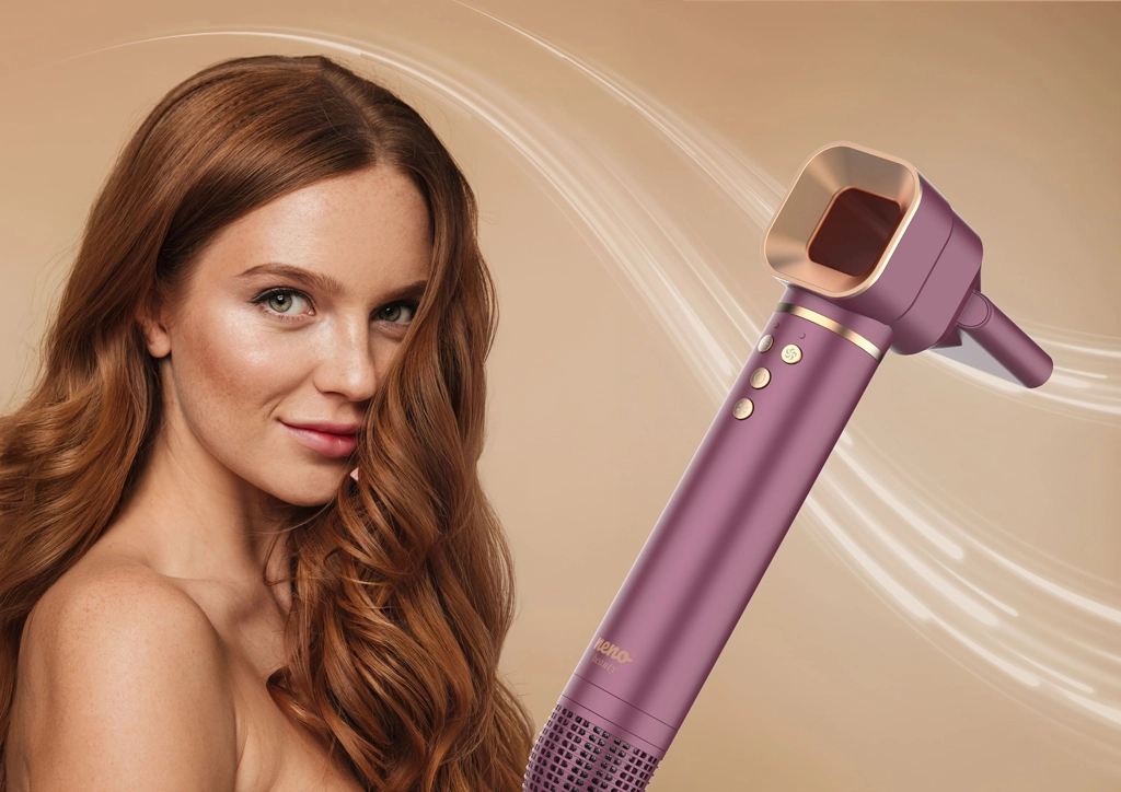 Neno Beauty Vio to uniwersalne rozwiązanie do codziennej stylizacji. Pięć wymiennych nasadek obejmuje wszystko od ekspresowego suszenia przez wygładzanie po objętość i delikatne loki. Technologia jonizacji uwalnia do 800 milionów jonów ujemnych, ogranicza elektryzowanie i pozostawia włosy miękkie, lśniące i podatne na układanie. Cicha praca (ok. 63 dB) oraz pamięć ostatniego ustawienia zwiększają komfort użytkowania.