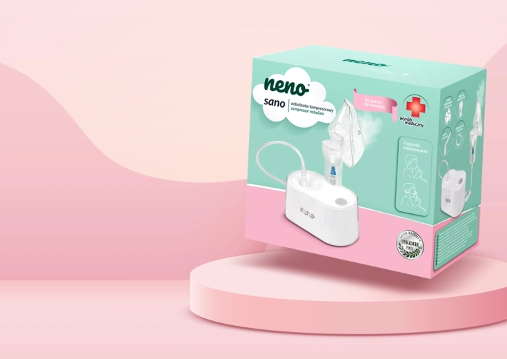 Kompresorowy inhalator Neno Sano przekształca płynny lek w delikatny aerozol o średniej wielkości cząstek ok. 5 μm i frakcji wdechowej do 76%, co sprzyja skutecznemu dotarciu do dróg oddechowych. Dzięki dwóm sposobom podawania – przez maskę lub ustnik – łatwo dopasowuje się do potrzeb dzieci i dorosłych.