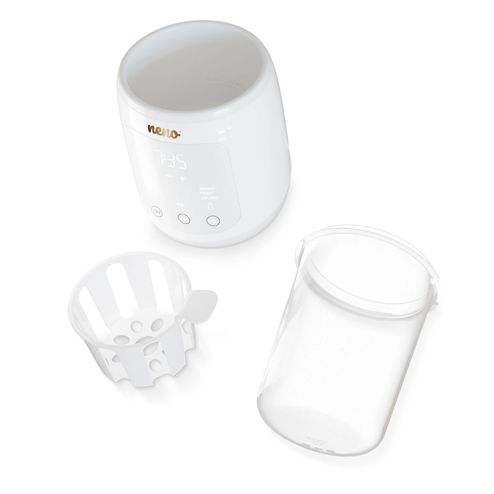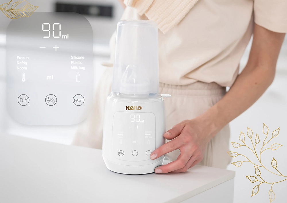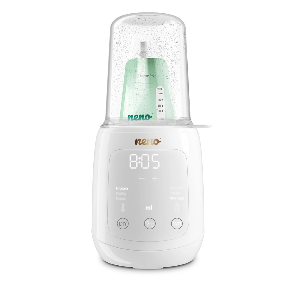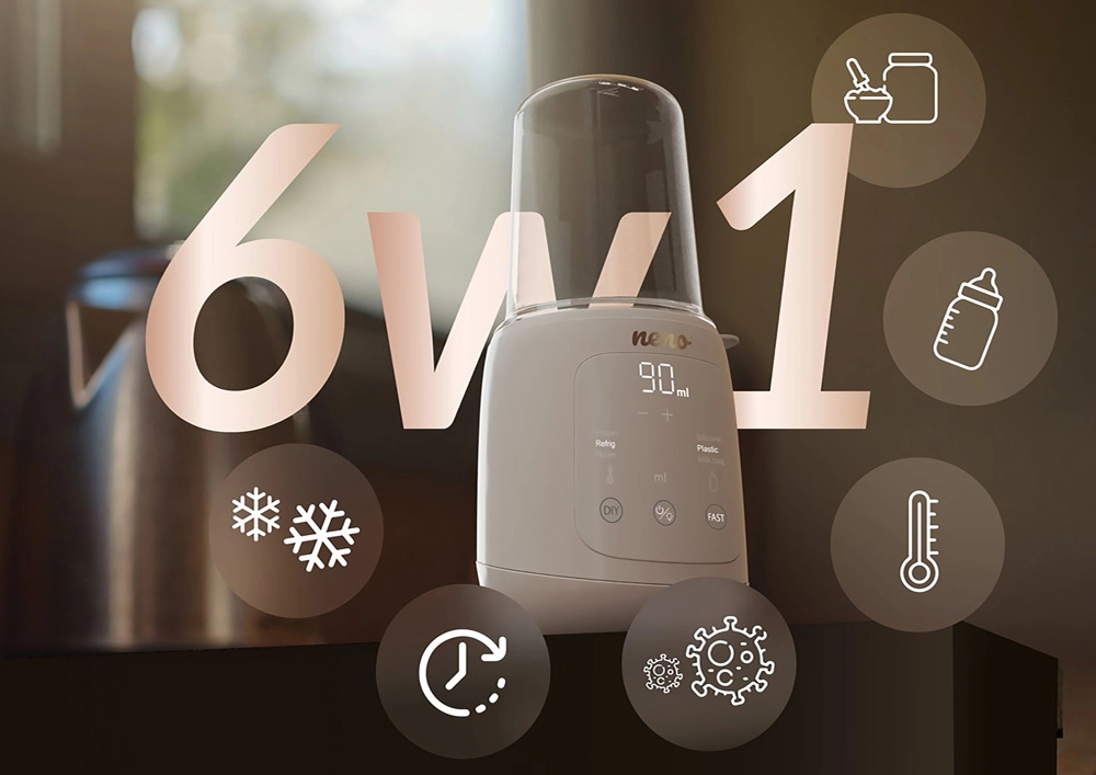 Neno Tocco zapewnia bezpieczny i szybki sposób przygotowania dziecięcych posiłków oraz mleka mamy do idealnej temperatury. Funkcje 6w1 pokrywają codzienne potrzeby – od delikatnej sterylizacji butelek i smoczków, przez bezpieczne rozmrażanie mleka w woreczkach, po precyzyjne utrzymywanie temperatury, gdy nadchodzi pora karmienia. Kompaktowe wymiary i uniwersalna kompatybilność (do średnicy 77 mm) sprawiają, że to świetny wybór do mniejszych kuchni i w podróży.