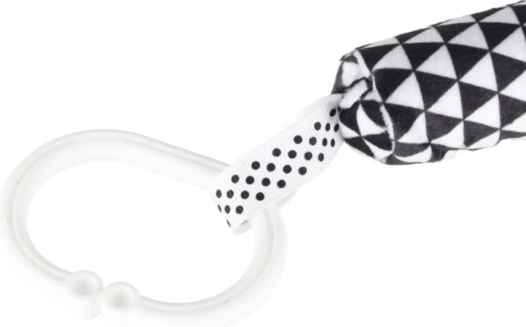 Praktyczny klips/pierścień umożliwia szybkie przypięcie do rączki wózka, fotelika samochodowego lub krawędzi łóżeczka. Zabawka pozostaje zawsze pod ręką.