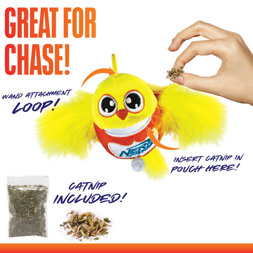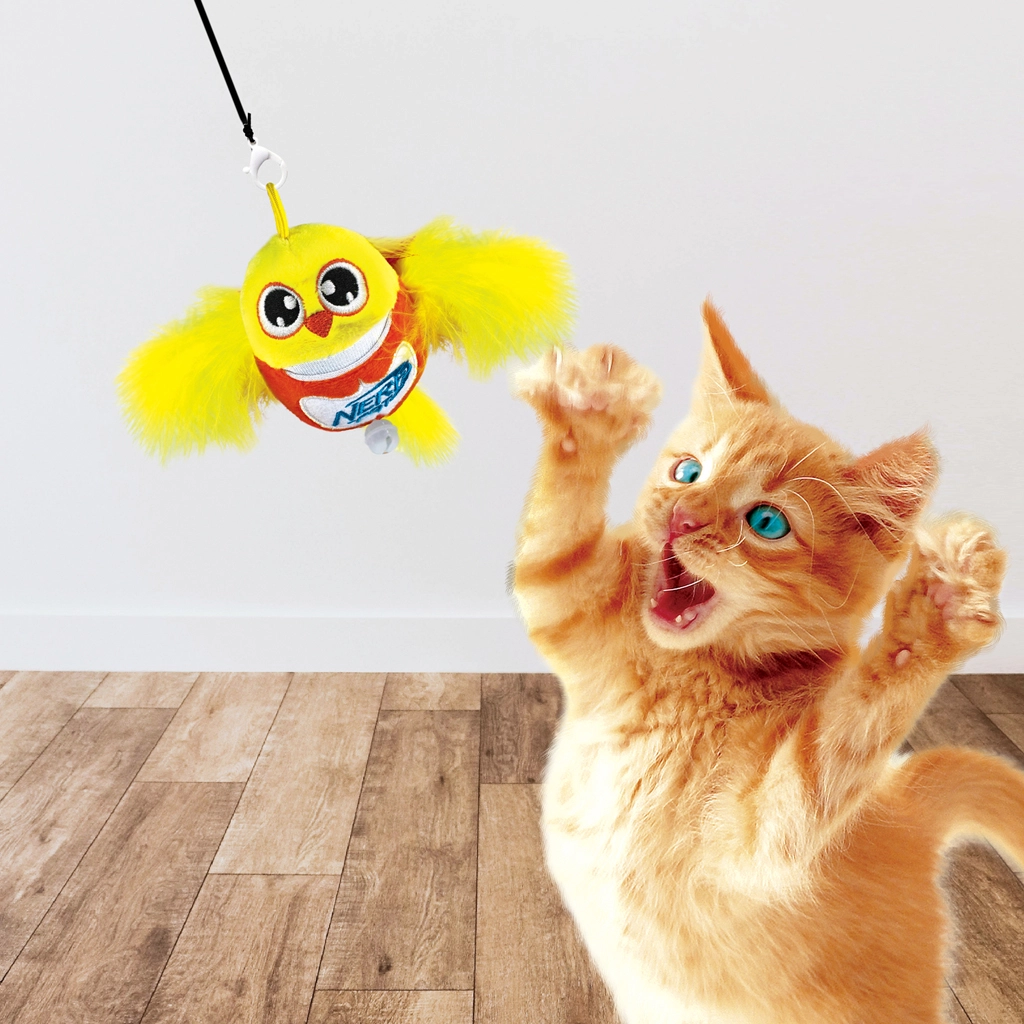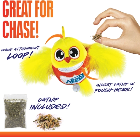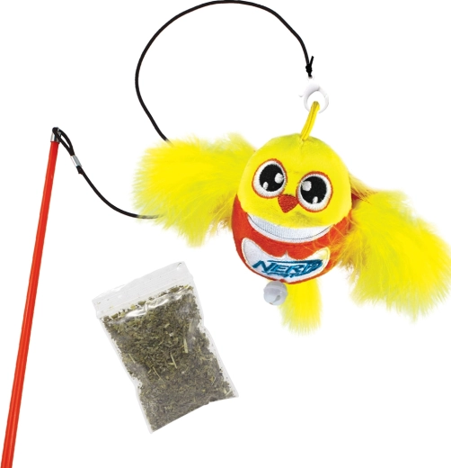 Spraw radość swojemu kotu realistyczną interaktywną zabawką NERF CAT. Miękki pluszowy ptaszek z piórkami lub frędzlami porusza się naturalnie podczas machania patyczkiem, a wraz z dzwoneczkiem angażuje wzrok i słuch. Dołączony woreczek z kocimiętką zwiększa motywację i wydłuża czas zabawy.