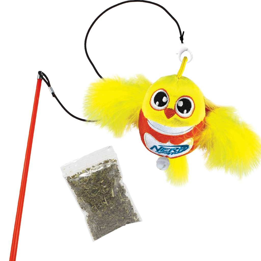 Interaktywna zabawka dla kotów NERF CAT zapewnia zabawę i trening instynktów łowieckich. Pluszowy ptaszek na patyczku ze sznurkiem i delikatnie dźwięczącym dzwoneczkiem naśladuje ruch ofiary, wspiera ruch, refleks i stymulację mentalną. W zestawie znajduje się kocimiętka dla jeszcze większego zainteresowania i radości z zabawy.