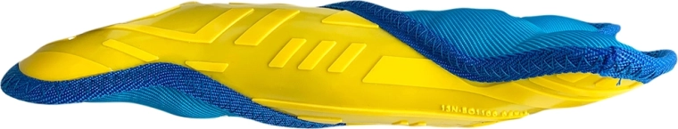 Kontrastowe kolory żółty i niebieski ułatwiają szybkie odnalezienie zabawki podczas aportowania w ogrodzie i w parku.