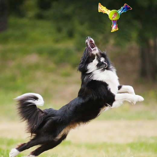Trójramienna konstrukcja z centralnym uchwytem pomaga zabawce stabilnie szybować w powietrzu, dzięki czemu Twój pies ma więcej czasu na złapanie.
