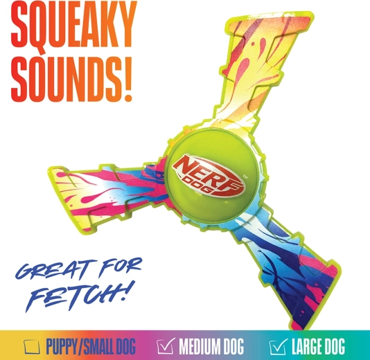 Ciesz się aktywną zabawą ze swoim psem dzięki latającej zabawce NERF DOG, która łączy aerodynamiczny kształt dla stabilnego lotu oraz wyraziste kolory dla łatwego śledzenia w powietrzu. Materiał TPR z fakturowanym wykończeniem oferuje doskonałą przyczepność przy rzucie i chwycie, a jednocześnie jest przyjazny dla psiego uzębienia.