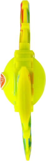 Kontrastowe kolory ułatwiają śledzenie zabawki w powietrzu. Rowkowana powierzchnia z TPR zapewnia pewny uchwyt przy rzucie i chwytaniu.