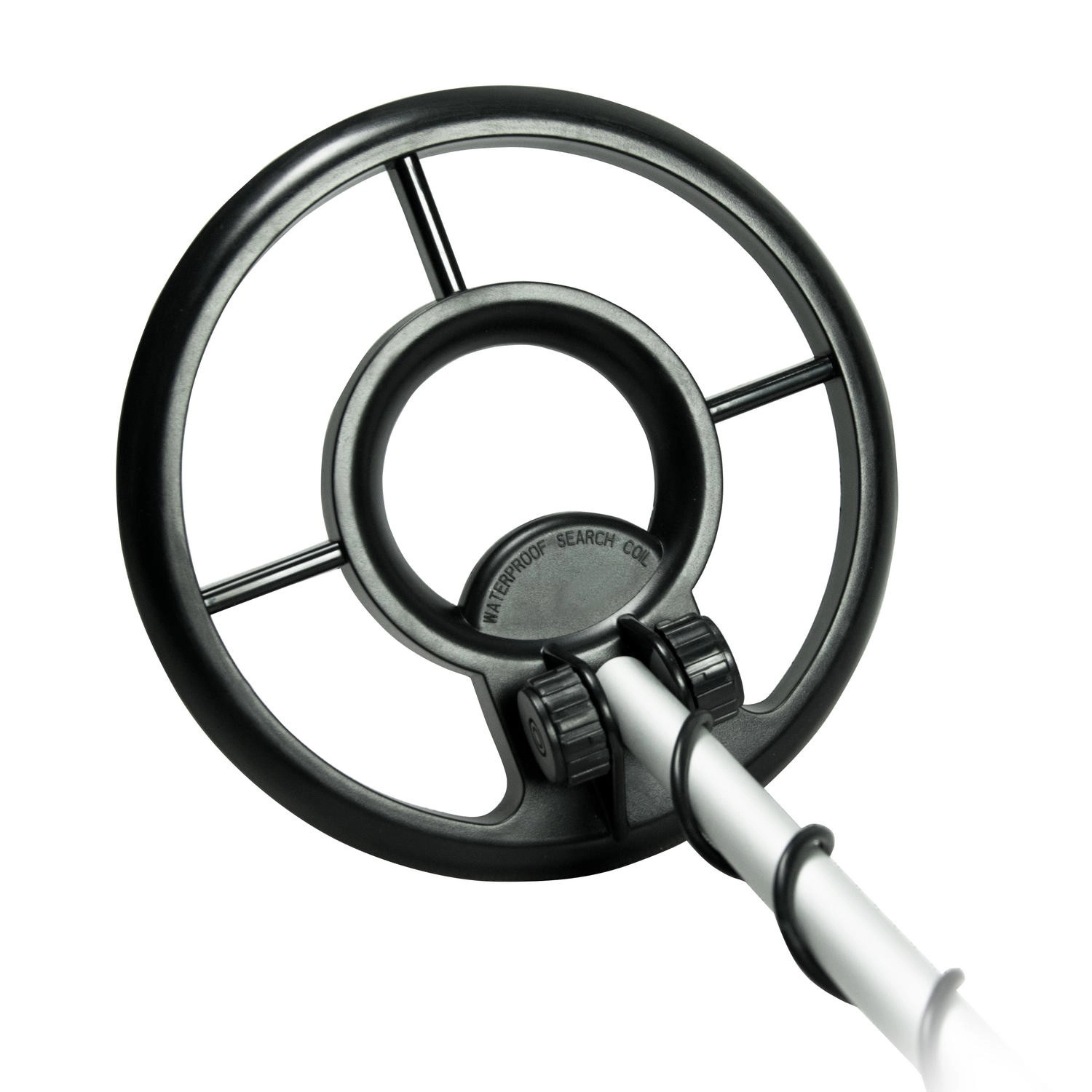 Trwała i wodoodporna cewka umożliwia poszukiwania w mokrym terenie oraz na brzegu. Średnica 190 mm zapewnia zrównoważony zasięg i czułość na małe cele.