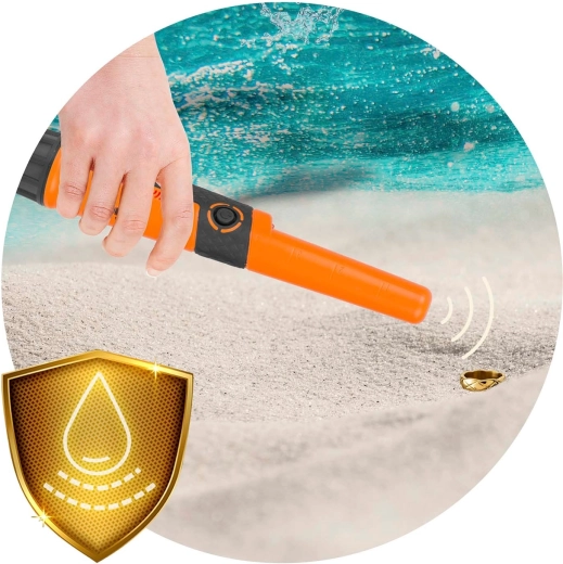 Używaj pinpointera w deszczu, wilgotnej ziemi i w wodzie. Wysoka klasa ochrony IPX8 poszerza możliwości poszukiwań na plaży, nad rzeką czy w błocie.