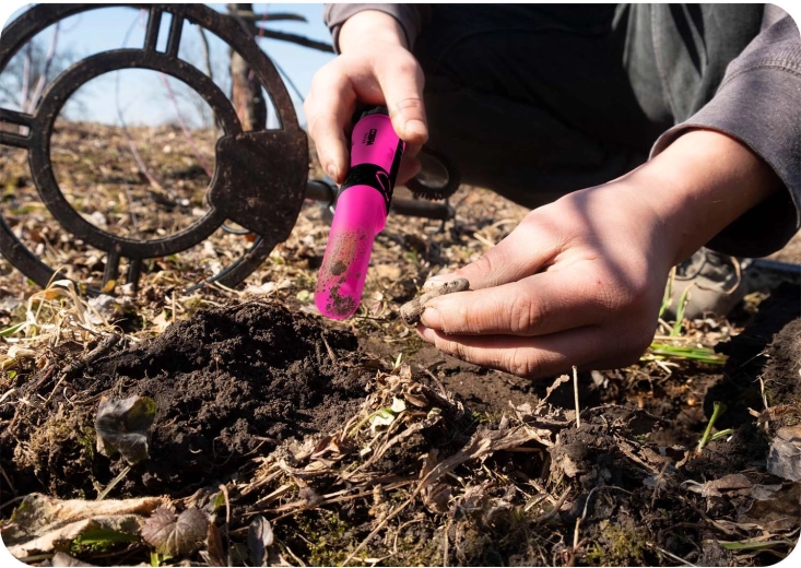 Skanuj dookoła i namierzaj dokładną pozycję znaleziska w kilka sekund. Idealny do monet, biżuterii i drobnych metalowych przedmiotów.