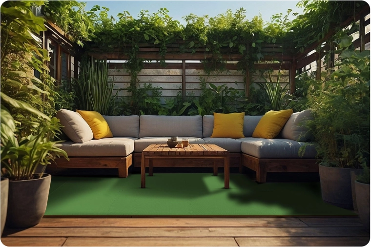 Elementy z krawędzią typu „puzzle” łatwo zatrzaskujesz ze sobą, tworząc dokładny kształt i rozmiar według potrzeb – od podkładu pod basen po ścieżki ochronne i strefy na tarasie.