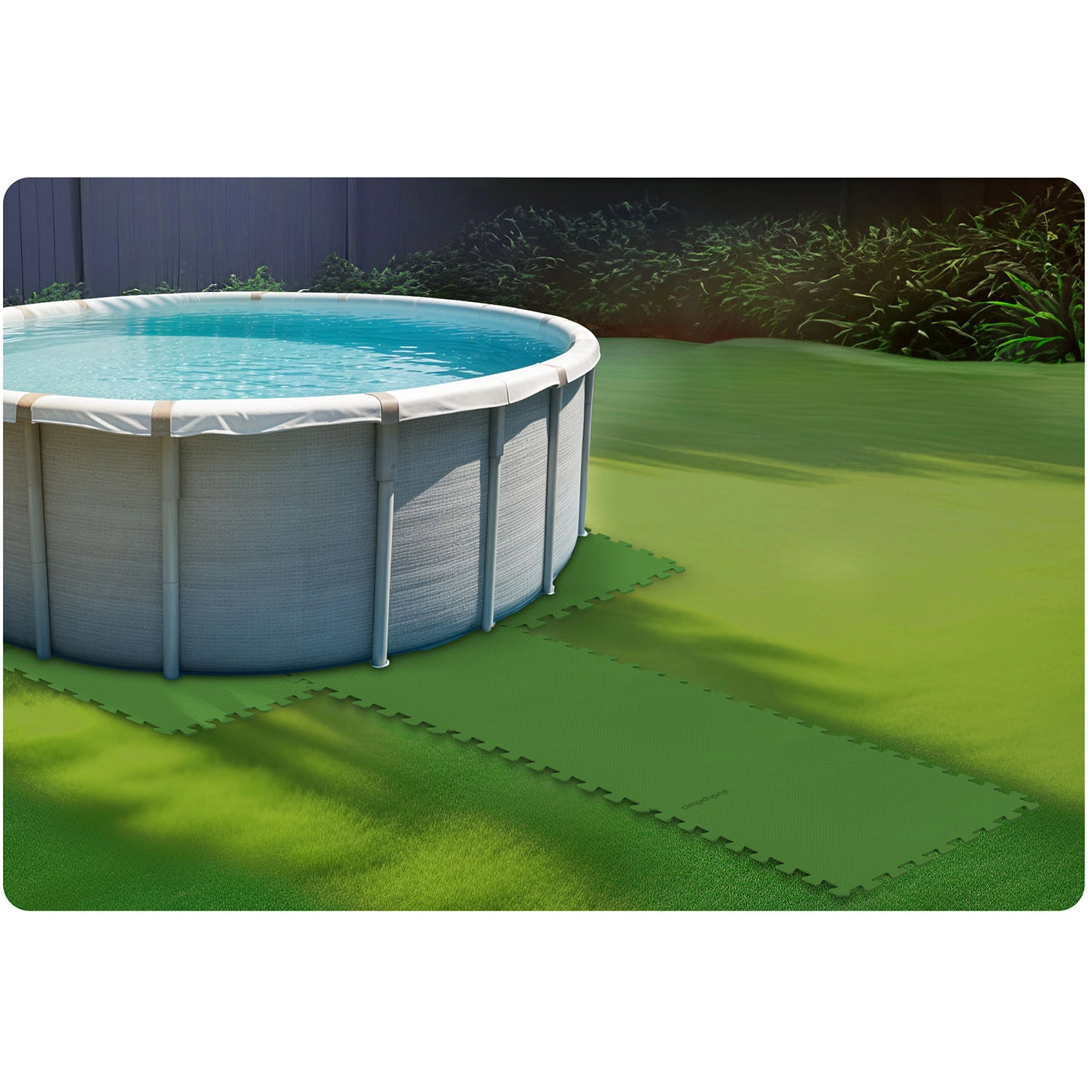 Praktyczna zielona mata puzzle jest idealna jako ochrona pod baseny naziemne, a także pod trampoliny, na tarasy, balkony czy do stref dziecięcych. Dzięki zamykanym krawędziom poszczególne elementy łatwo łączysz w różne kształty i wymiary. Wytrzymały materiał nie chłonie wody, łatwo się czyści i pomaga utrzymać otoczenie basenu w czystości i bezpieczeństwie.