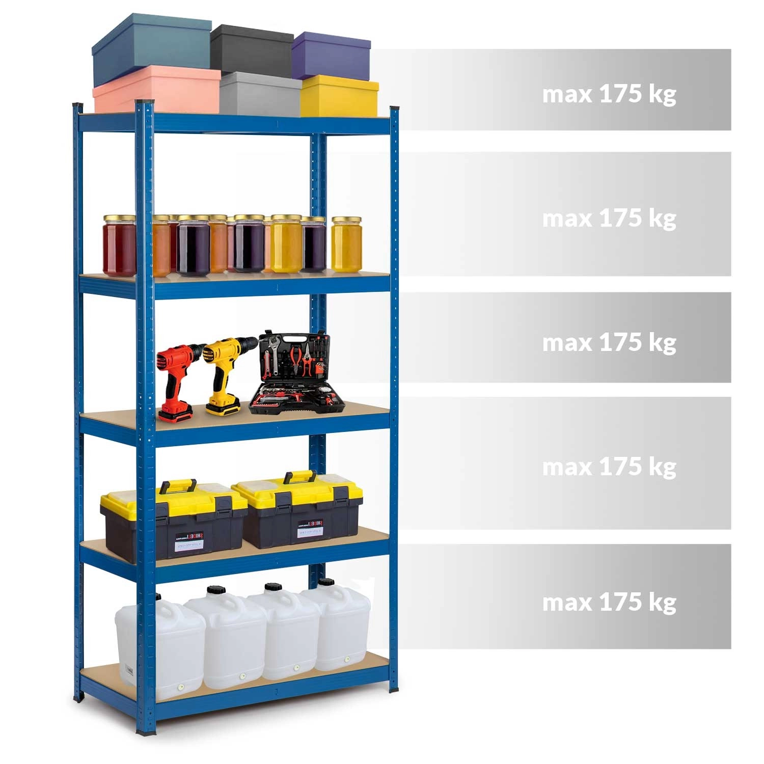 Metalowy regał HUMBERG 180 × 90 × 40 cm, niebieski, 5 półek, nośność 875 kg