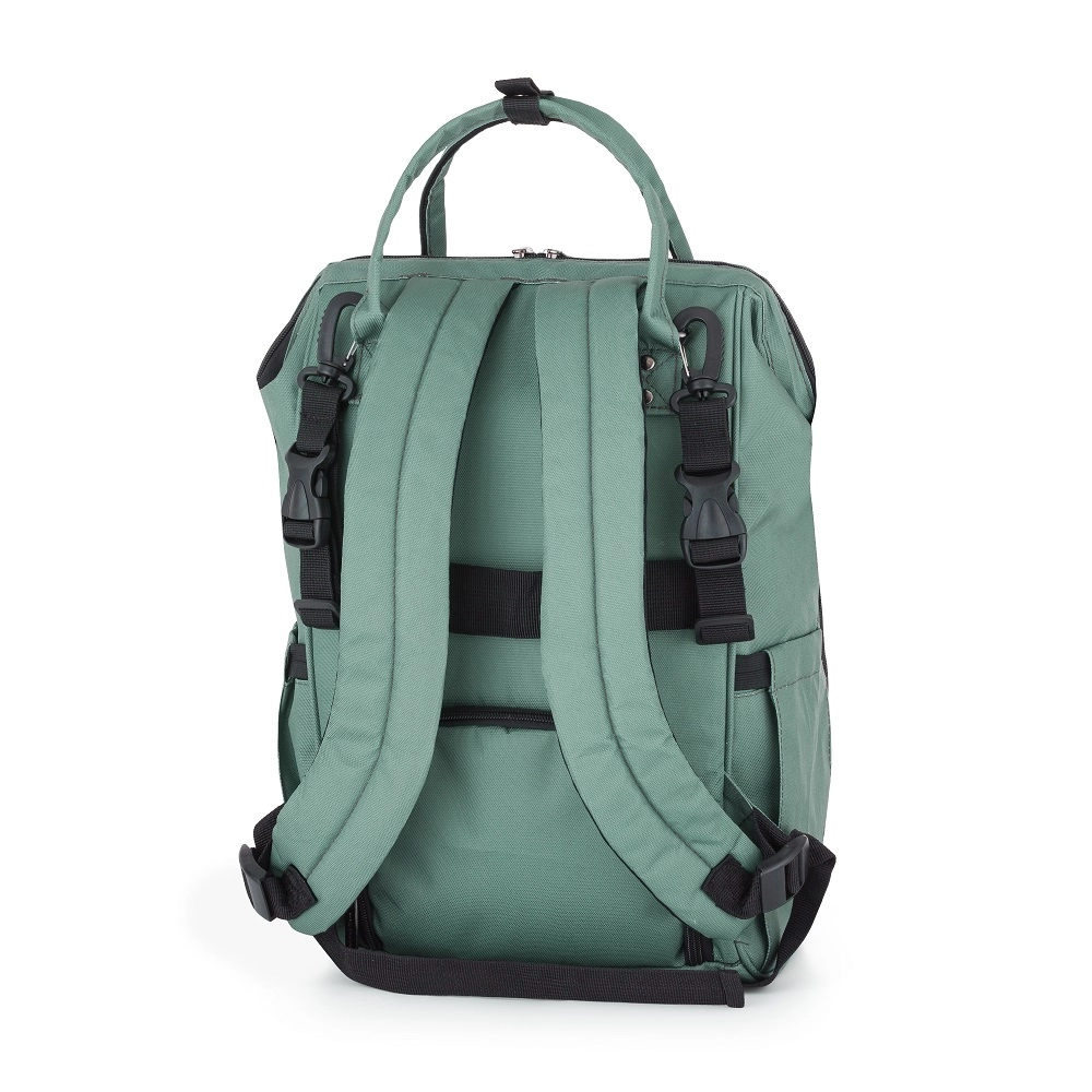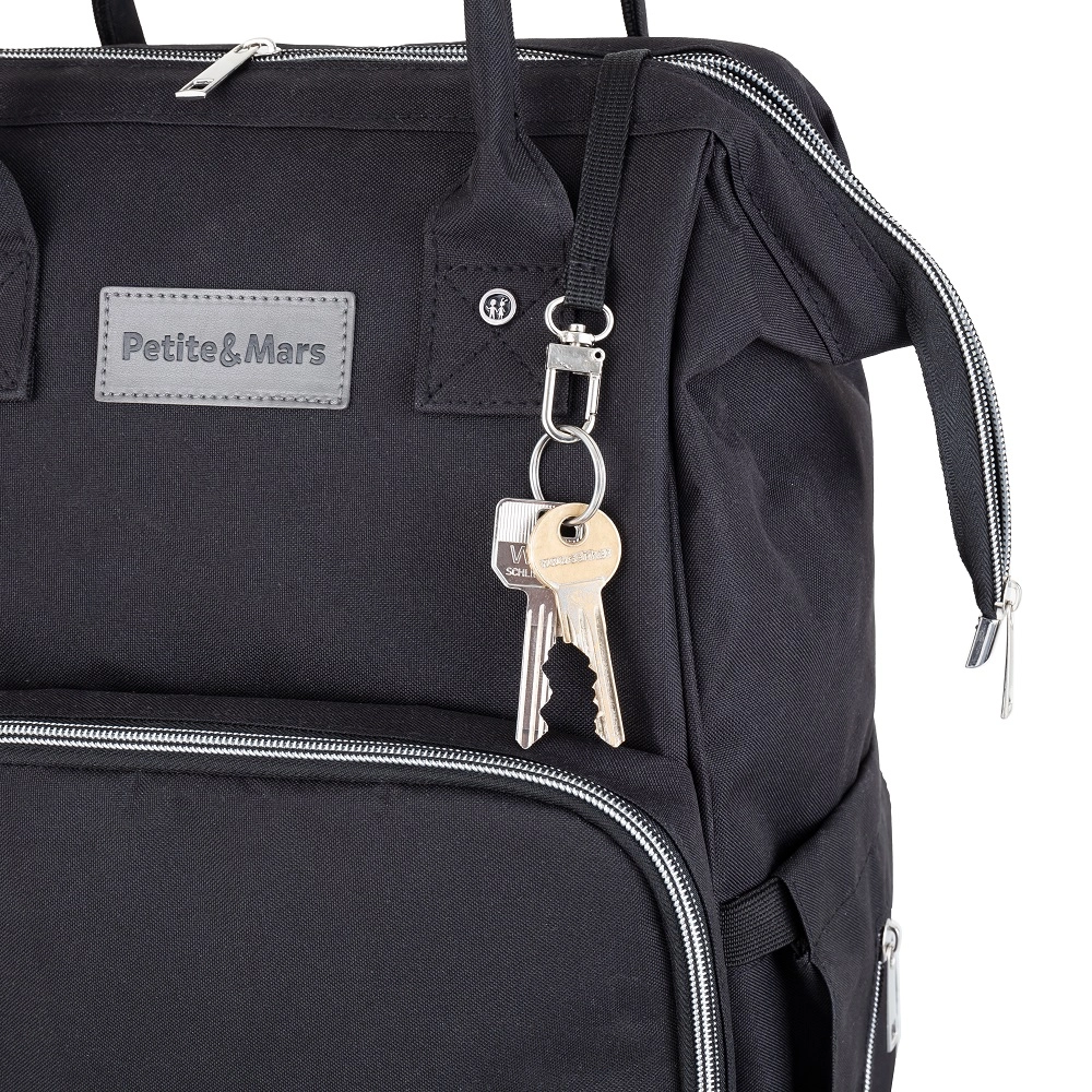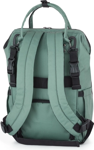 Przemyślany układ oferuje 11 łatwo dostępnych kieszeni, w tym 2 termokieszenie do utrzymania temperatury butelek, wodoodporną kieszeń na mokre ubrania lub ściereczki, zewnętrzną kieszeń na butelkę oraz zewnętrzną kieszeń na chusteczki nawilżane. Nie zabrakło sznurka na klucze, tylnego dostępu na zamek dla szybkiego wglądu oraz paska do nasunięcia na rączkę walizki w podróży.