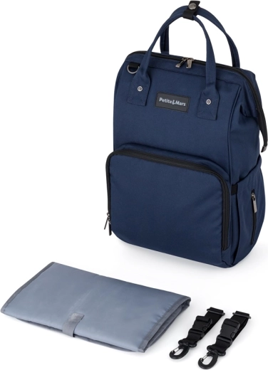 Stylowy i funkcjonalny plecak do wózka Petite&Mars Jackob w kolorze ciemnoniebieskim oferuje lekkość, świetną organizację i materiały odporne na wilgoć. Dzięki 11 kieszeniom, w tym kieszeniom termicznym, wodoodpornej kieszeni na mokre rzeczy oraz szybkiemu bocznemu dostępowi, wszystko dla dziecka i rodziców masz zawsze pod ręką. W zestawie znajduje się przewijak, plecak łatwo przymocujesz do wózka i waży jedynie 800 g.