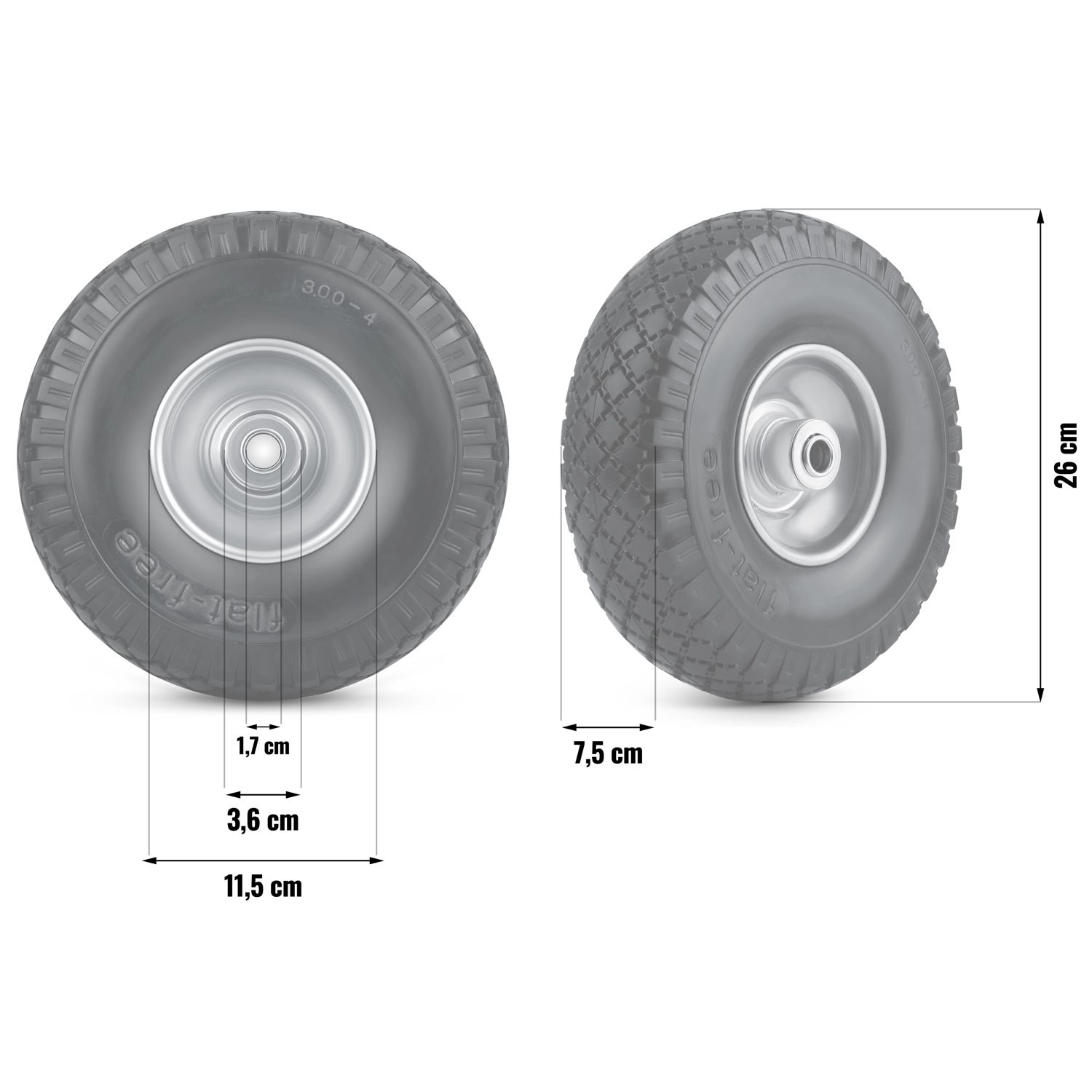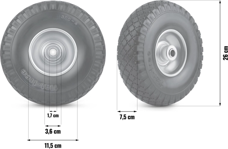 Uniwersalne koło bezdętkowe HUMBERG 3.00-4 to idealny zamiennik do taczek i wózków ogrodowych. Oferuje wytrzymałą wzmocnioną stalową obręcz, trwałe łożyska kulkowe oraz piankowe wypełnienie PU, które nie ulega przebiciu i nie wymaga pompowania. Dzięki średnicy 26 cm, szerokości 7,5 cm i otworowi łożyska 1,7 cm zapewnia niezawodną pracę w warsztatach, ogrodach i zakładach.