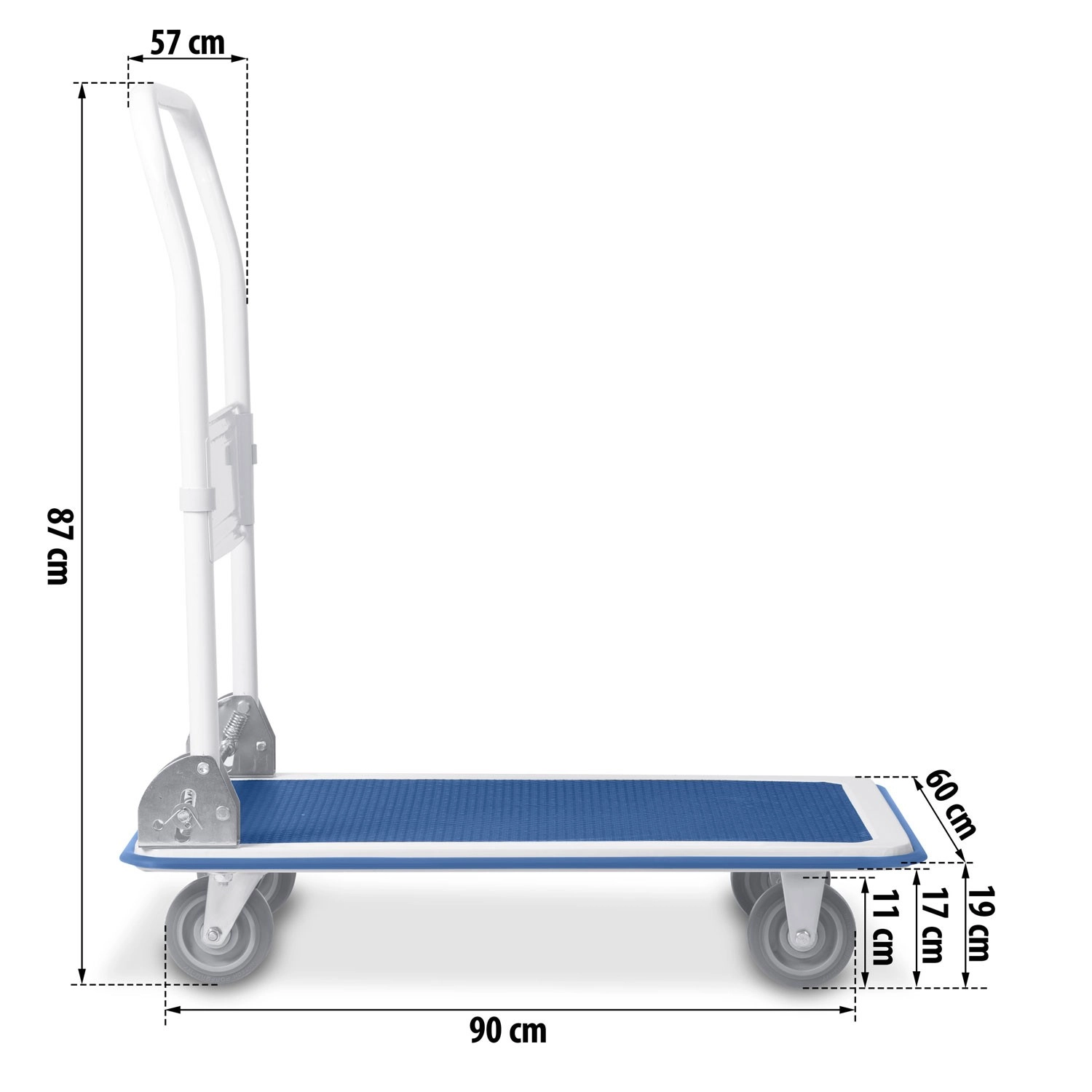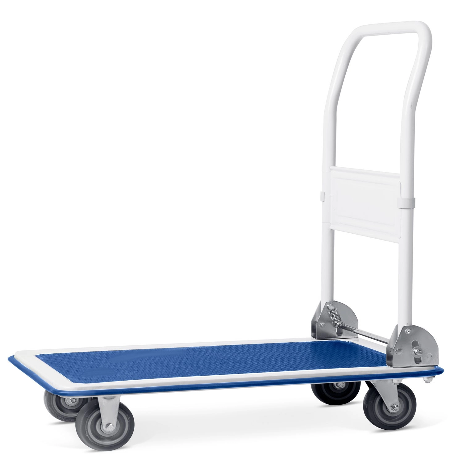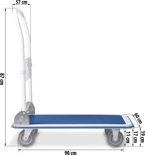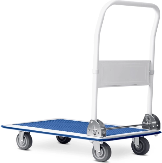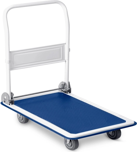 Mocna stalowa konstrukcja i równomierne rozłożenie obciążenia umożliwiają bezpieczny transport do 300 kg. Idealny do magazynów, sklepów i podczas przeprowadzek.