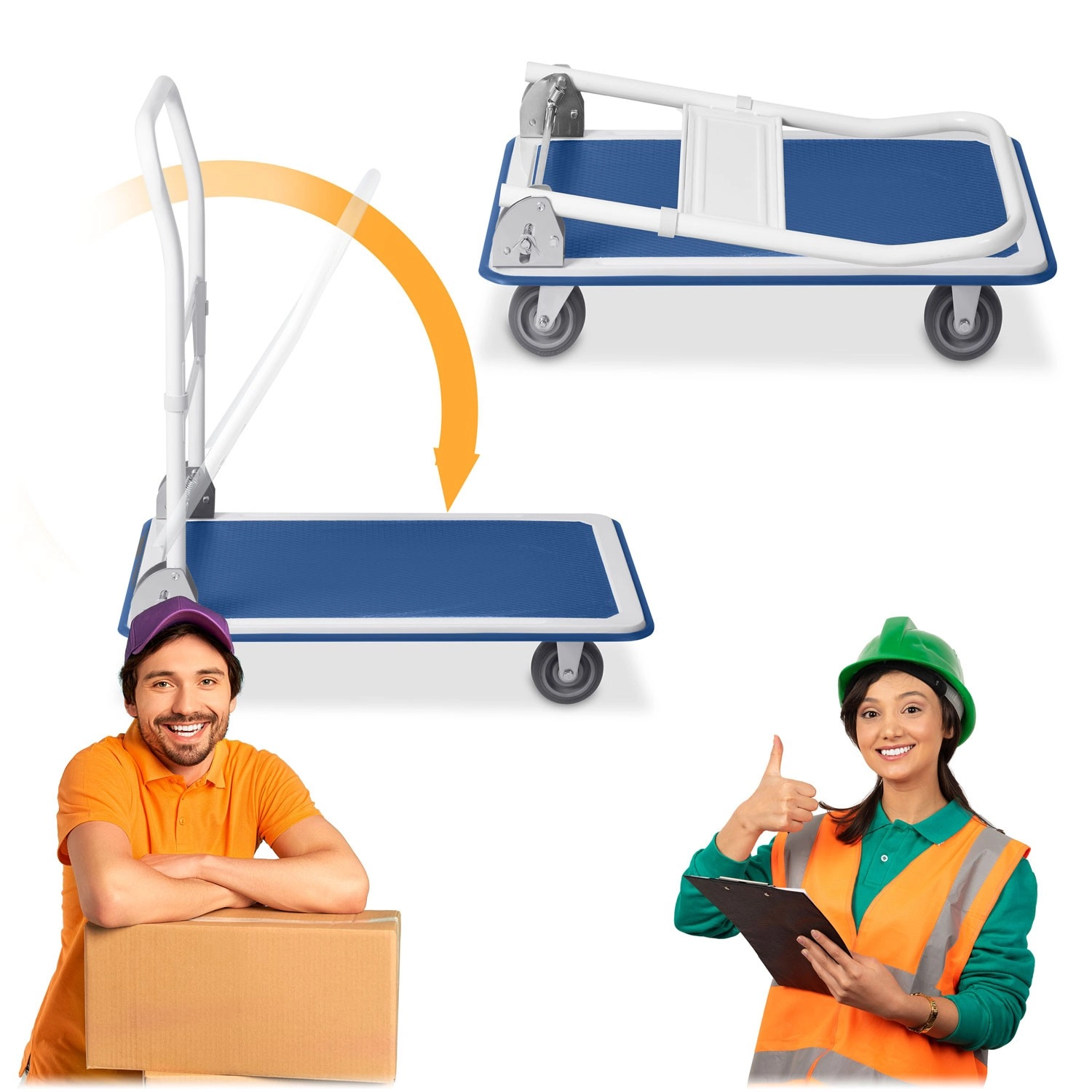 Dzięki udźwigowi do 300 kg (przy równomiernym rozłożeniu) łatwo przewieziesz kartony, urządzenia lub zapasy. Składany uchwyt z profilowanym chwytem oszczędza miejsce podczas przechowywania, a wózek dzięki niskiej masie łatwo przenosić. Gumowa krawędź platformy dodatkowo pomaga chronić ładunek i otoczenie przed otarciami.