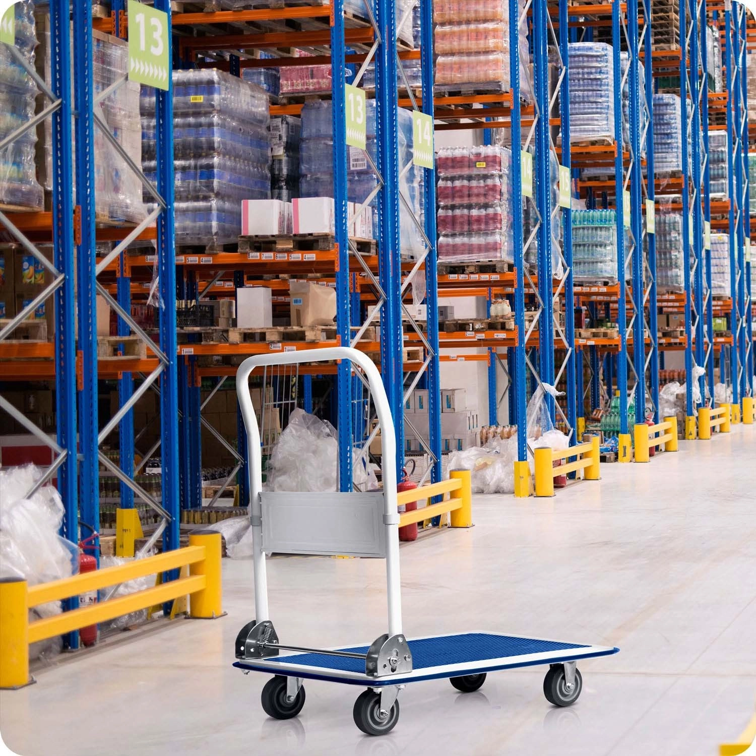 Uniwersalny wózek platformowy Humberg HM-506 udźwignie aż 300 kg ładunku. Oferuje wytrzymałą stalową konstrukcję, antypoślizgową platformę z PVC oraz składany ergonomiczny uchwyt dla łatwego prowadzenia i przechowywania. Dzięki obrotowym kołom 360° i gumowej krawędzi manewrowanie jest bezpieczne, precyzyjne i płynne w sklepach, magazynach oraz podczas przeprowadzek.