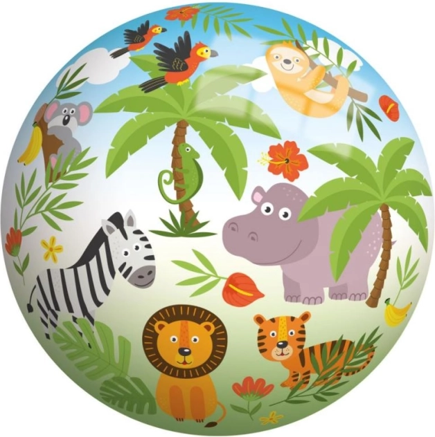 Ta pięknie zdobiona piłka z motywem dżungli to doskonały wybór do zabaw w ogrodzie, na boisku, a także w basenie. Wodoodporność sprawia, że możesz się nią cieszyć wszędzie, a specjalny nadruk ucieszy nie tylko dzieci, ale także dorosłych miłośników dzikiej przyrody. Ze średnicą 23 cm jest idealna do kopania, rzucania lub pływania.