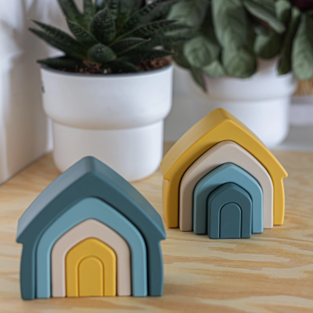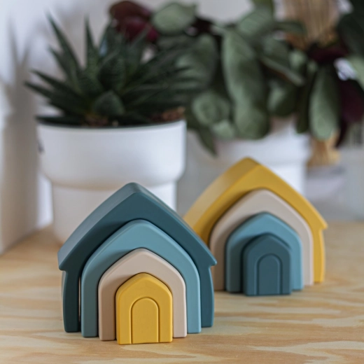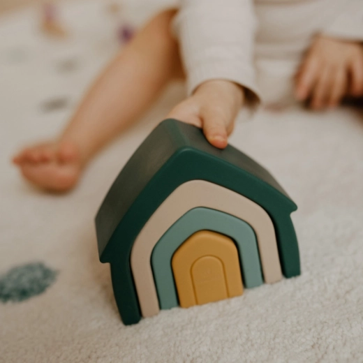 Odkryj kreatywną silikonową układankę HOUSE Misty Green od PETITE & MARS, która w zabawny sposób rozwija motorykę małą, koordynację oko–ręka oraz wyobraźnię przestrzenną. Cztery miękkie łuki z 100% silikonu spożywczego bez BPA łatwo składają się w kształt domku, są bezpieczne, lekkie, trwałe i łatwe w czyszczeniu. Idealne dla dzieci od 12 miesięcy.
