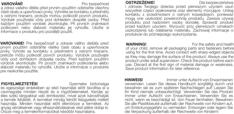 Zabawka wykonana jest z silikonu spożywczego bez BPA, który jest trwały, higieniczny i łatwy w czyszczeniu. Ergonomiczne wymiary ułatwiają chwytanie, zaokrąglone kształty minimalizują ryzyko urazu, a forma elementów została zaprojektowana tak, aby zapobiegać zadławieniu.