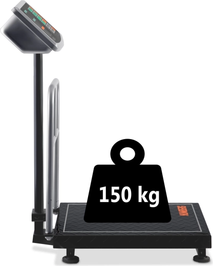Wytrzymała przemysłowa waga o udźwigu 150 kg do magazynu, logistyki i rolnictwa. Oferuje wysoką dokładność do 0,05 kg, podświetlany wyświetlacz LCD, ostrzeżenie o przeciążeniu oraz zasilanie sieciowe i z akumulatora 6 V. Solidna stalowa nierdzewna platforma z powłoką antypoślizgową oraz składana konstrukcja zapewniają wygodne użytkowanie i łatwe przechowywanie.