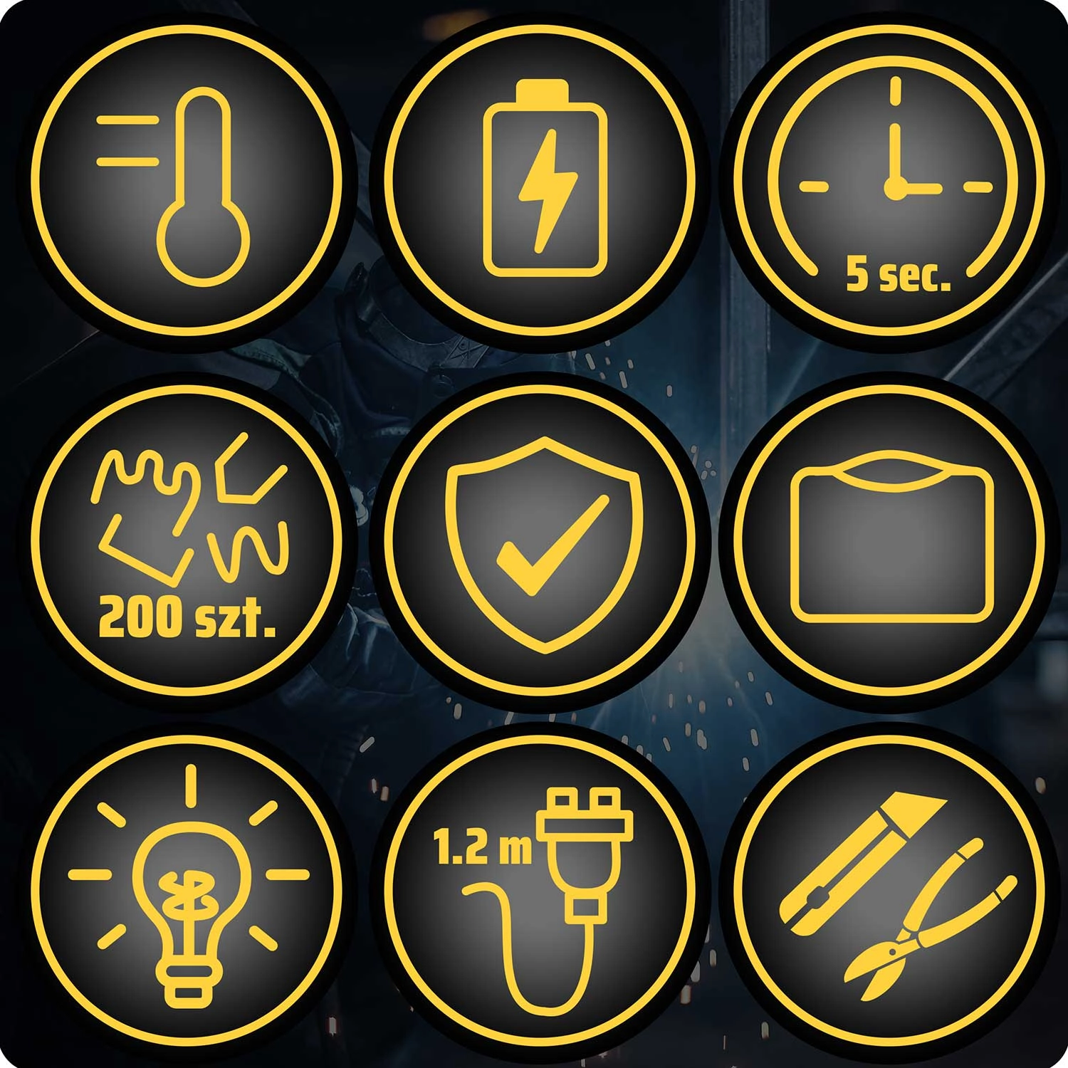 - Bezpieczna praca – wytrzymała obudowa z PP i bezpieczne końcówki utrzymują prawidłową temperaturę roboczą.