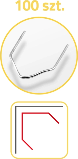 Uniwersalne zszywki do zgrzewarek plastiku typu D z wybrzuszonym kątem 8 mm w opakowaniu 100 szt. Są kompatybilne z większością zgrzewarek do plastiku, wykonane z wysokiej jakości metalu i odporne na korozję. Idealne do szybkich i ekonomicznych napraw elementów z tworzyw sztucznych bez wizyty w serwisie.