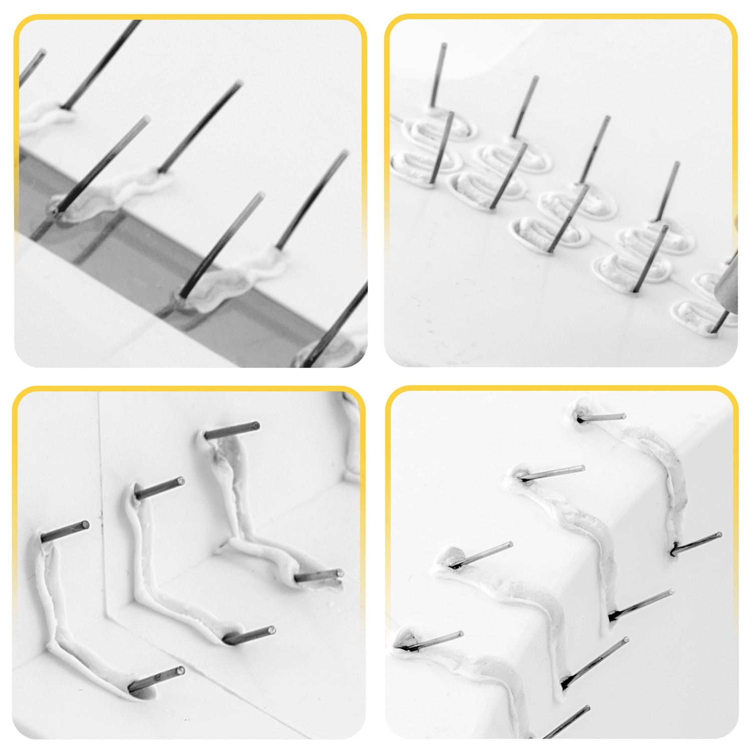 Z tym zestawem zszywek naprawisz pęknięte zderzaki, klosze reflektorów, elementy wnętrza oraz plastikowe osłony urządzeń. Różne kształty i rozmiary zszywek umożliwiają mocne zabezpieczenie pęknięć w narożnikach, łukach i na płaskich powierzchniach, zarówno w cienkich, jak i grubszych materiałach. Dzięki wytrzymałej stali zszywki są stabilne, trwałe i nierdzewne.